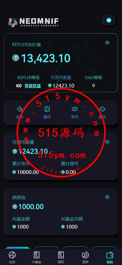 综合性数字资产管理平台,整合了质押、AI基金投资、加密货币交易、邀请奖励和社区投票等多种功能