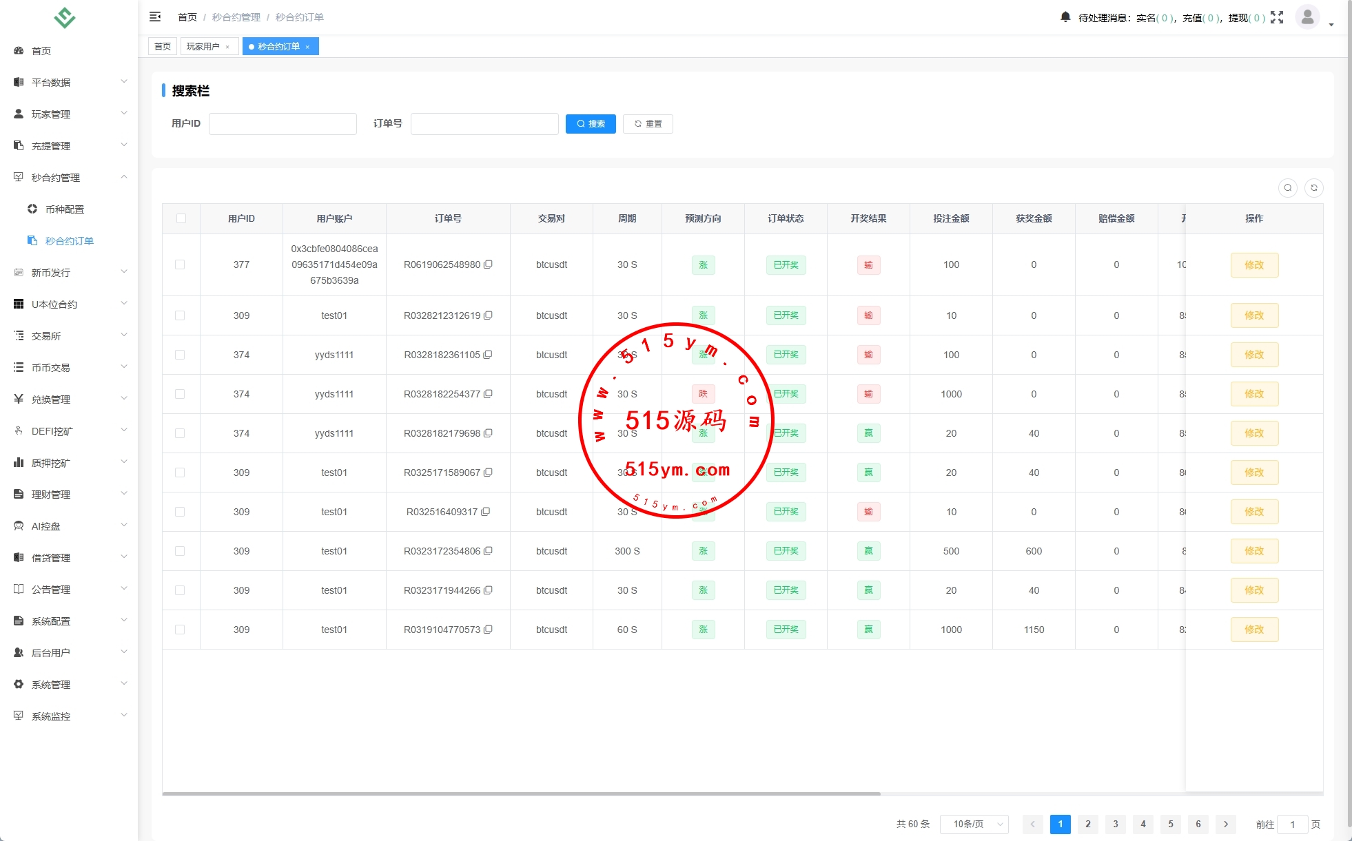 系统功能:币币、U本位合约、秒合约、质押挖矿、助力贷、理财、推广三级分销等
