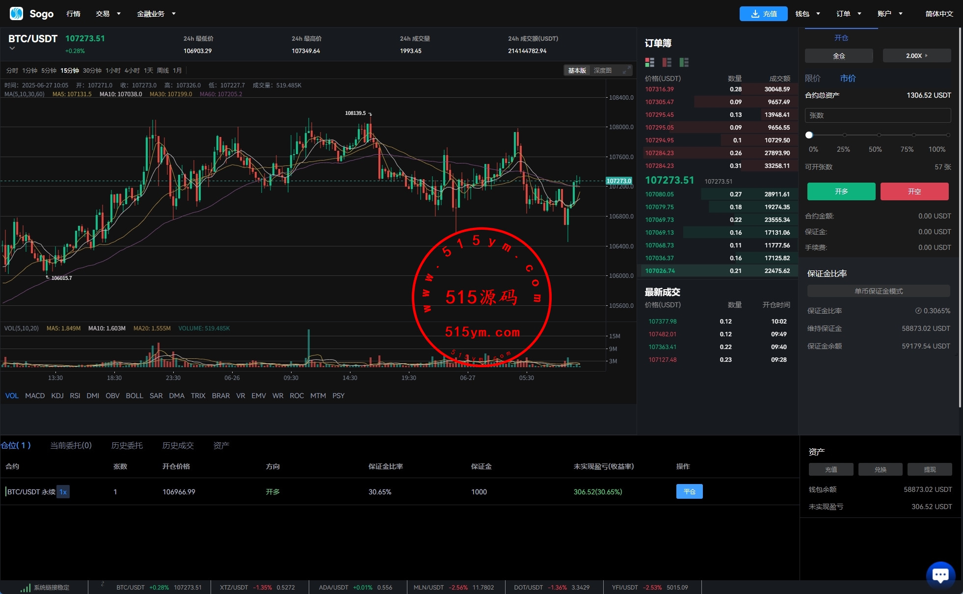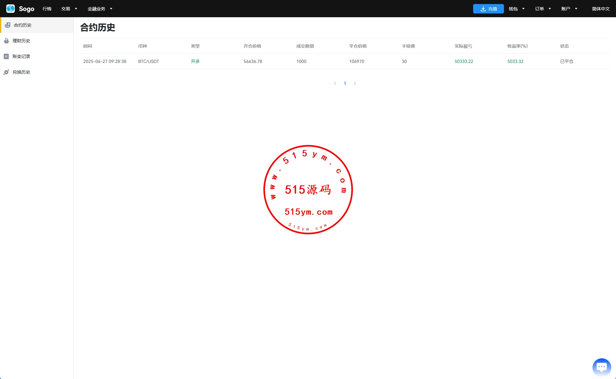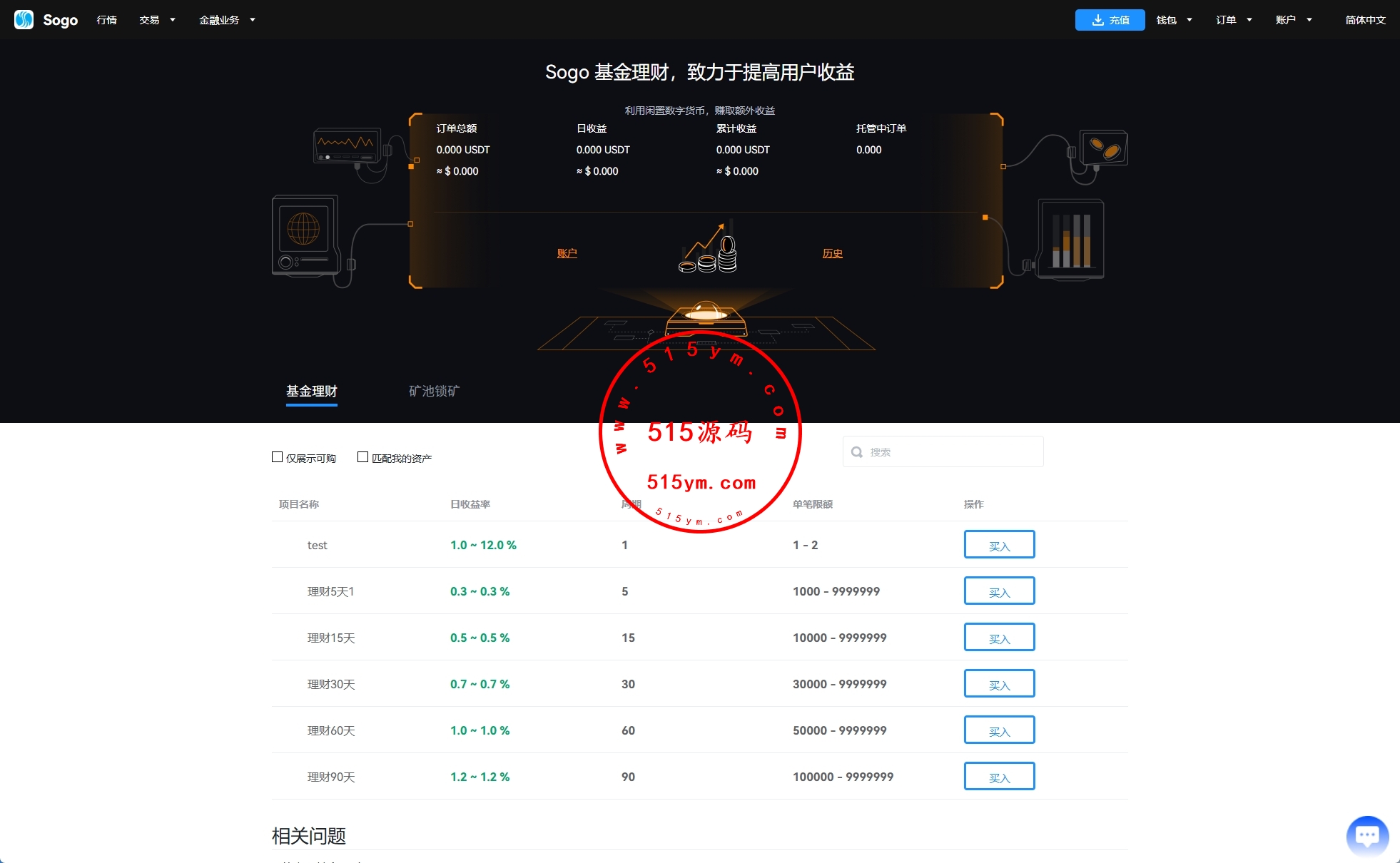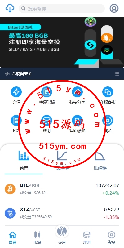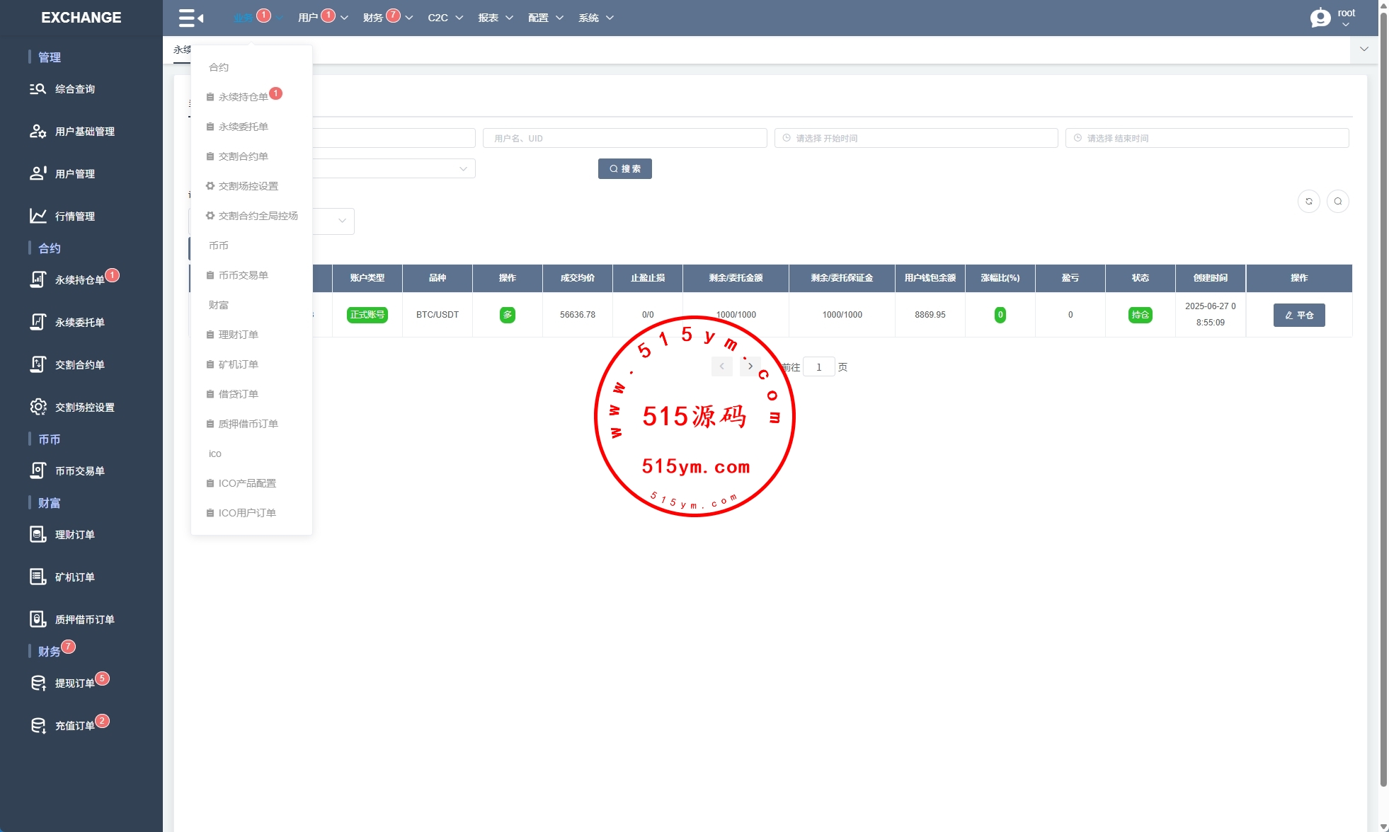 系统功能:永续合约、交割合约、现货交易、理财、矿池、质押借币等功能