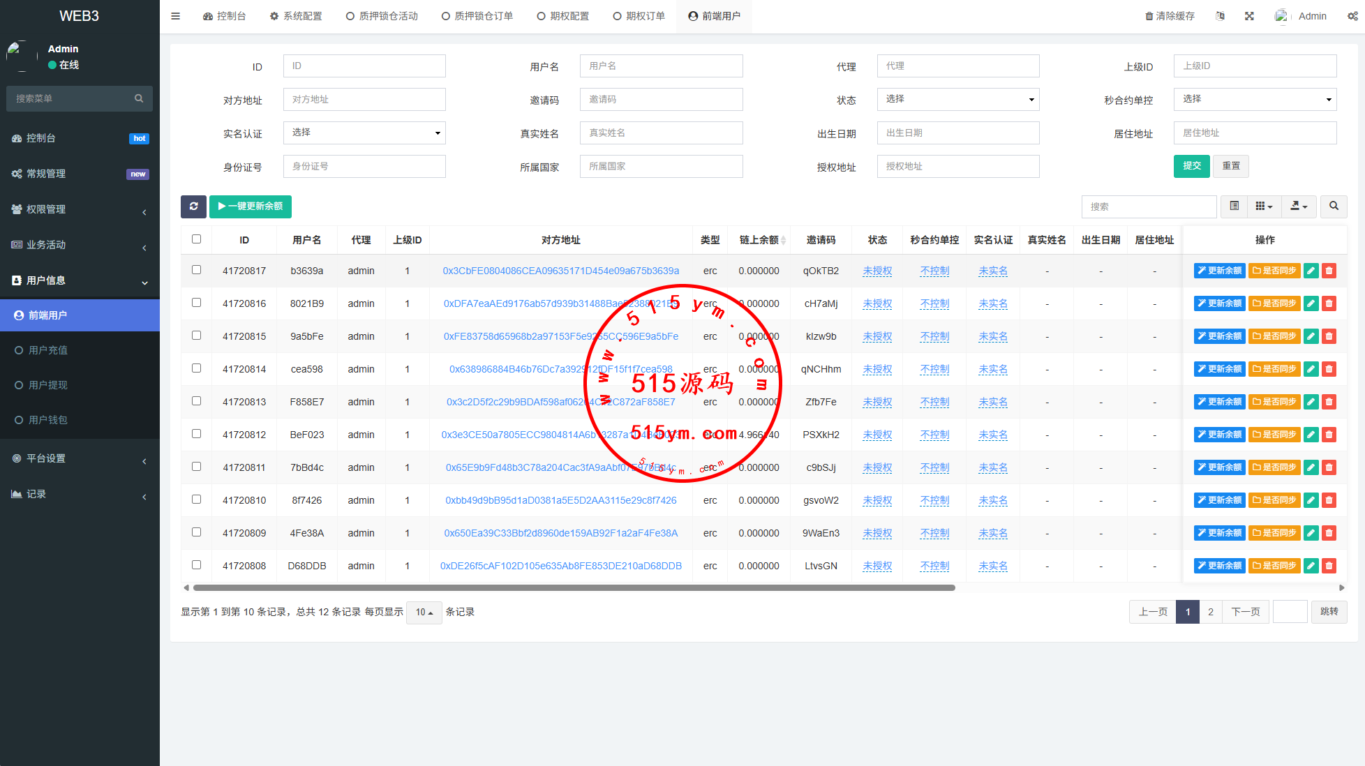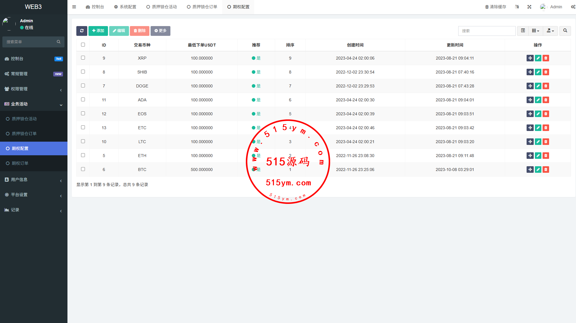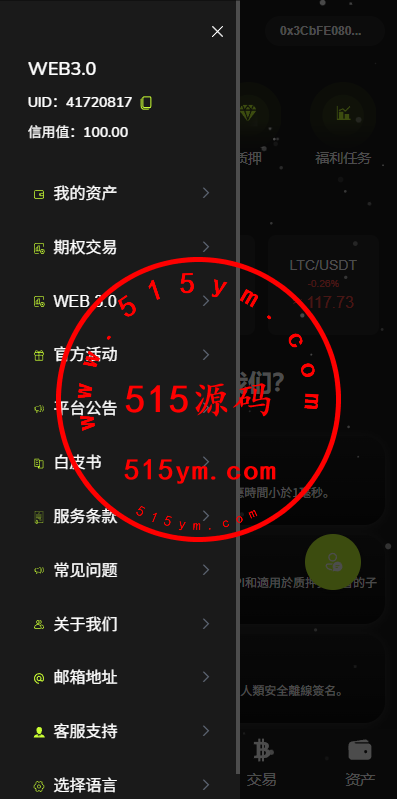 UI重新定制二开,前端VUE开发,后端php的FastAdmin框架前端多语言,支持期权交易,质押,信用分等功能系统支持E链支持授权,源码全开源带源码