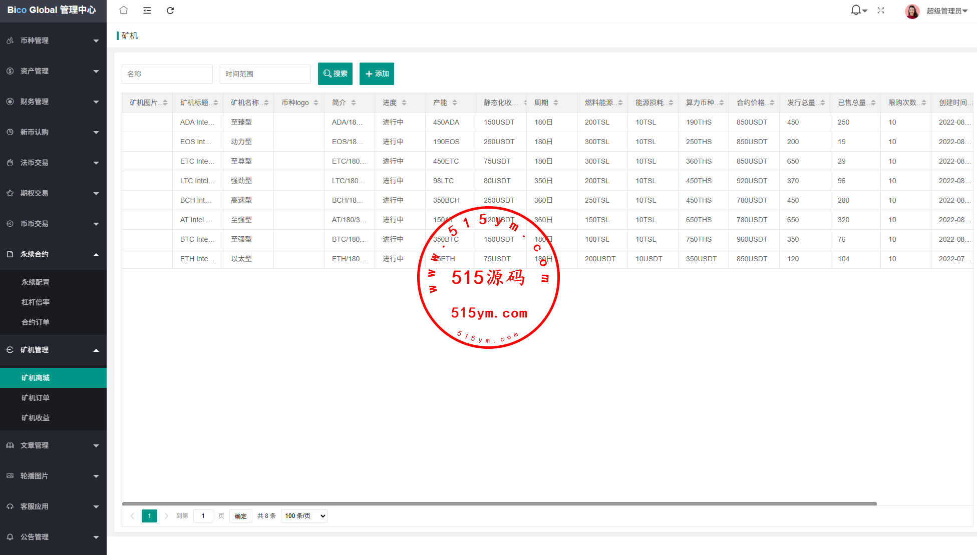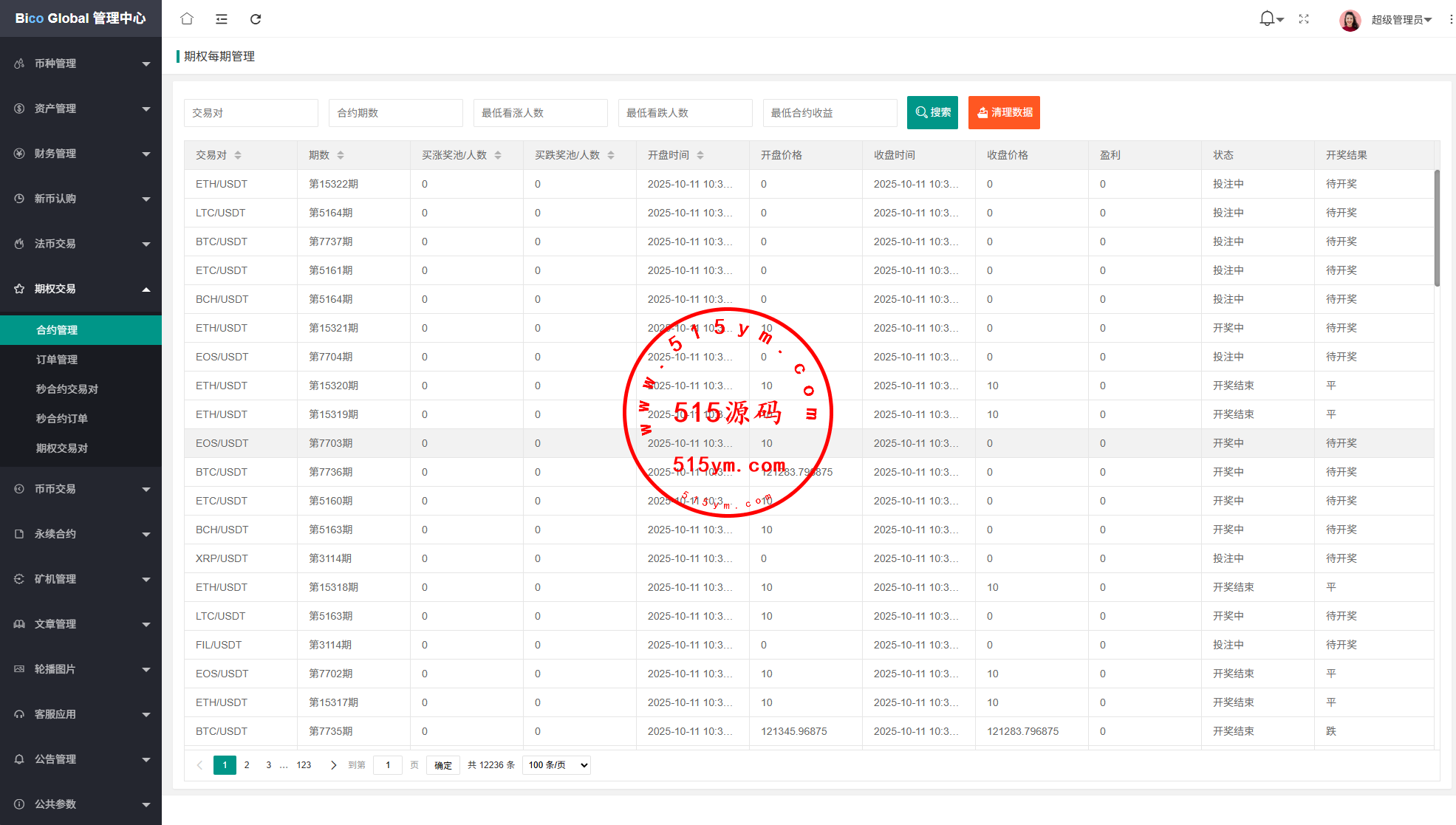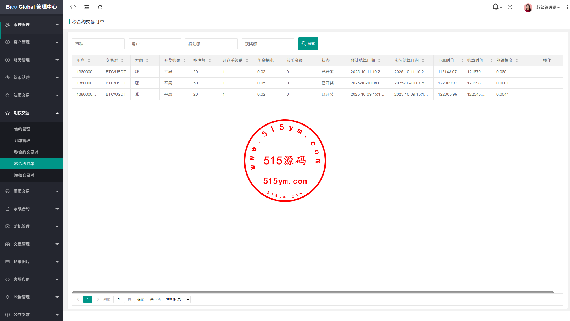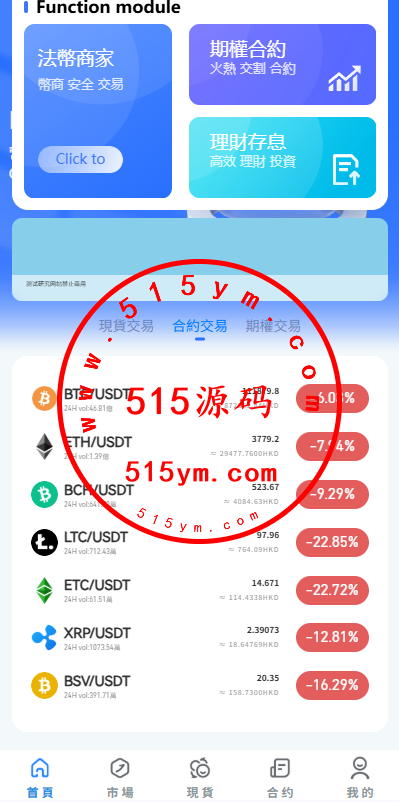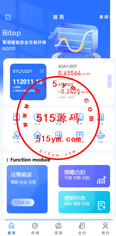 系统功能:永续合约,期权合约,秒合约,平台币,矿机质押,