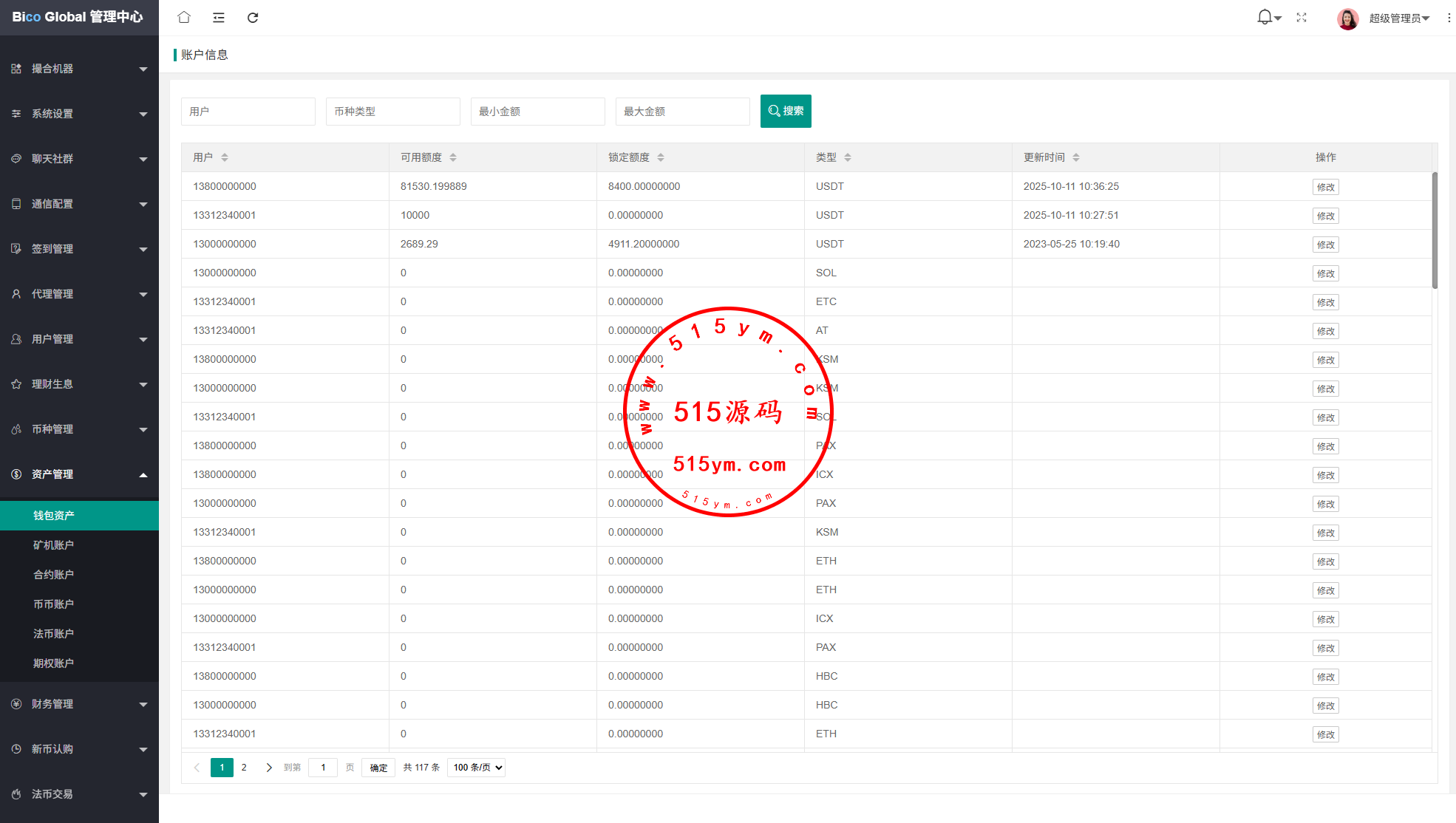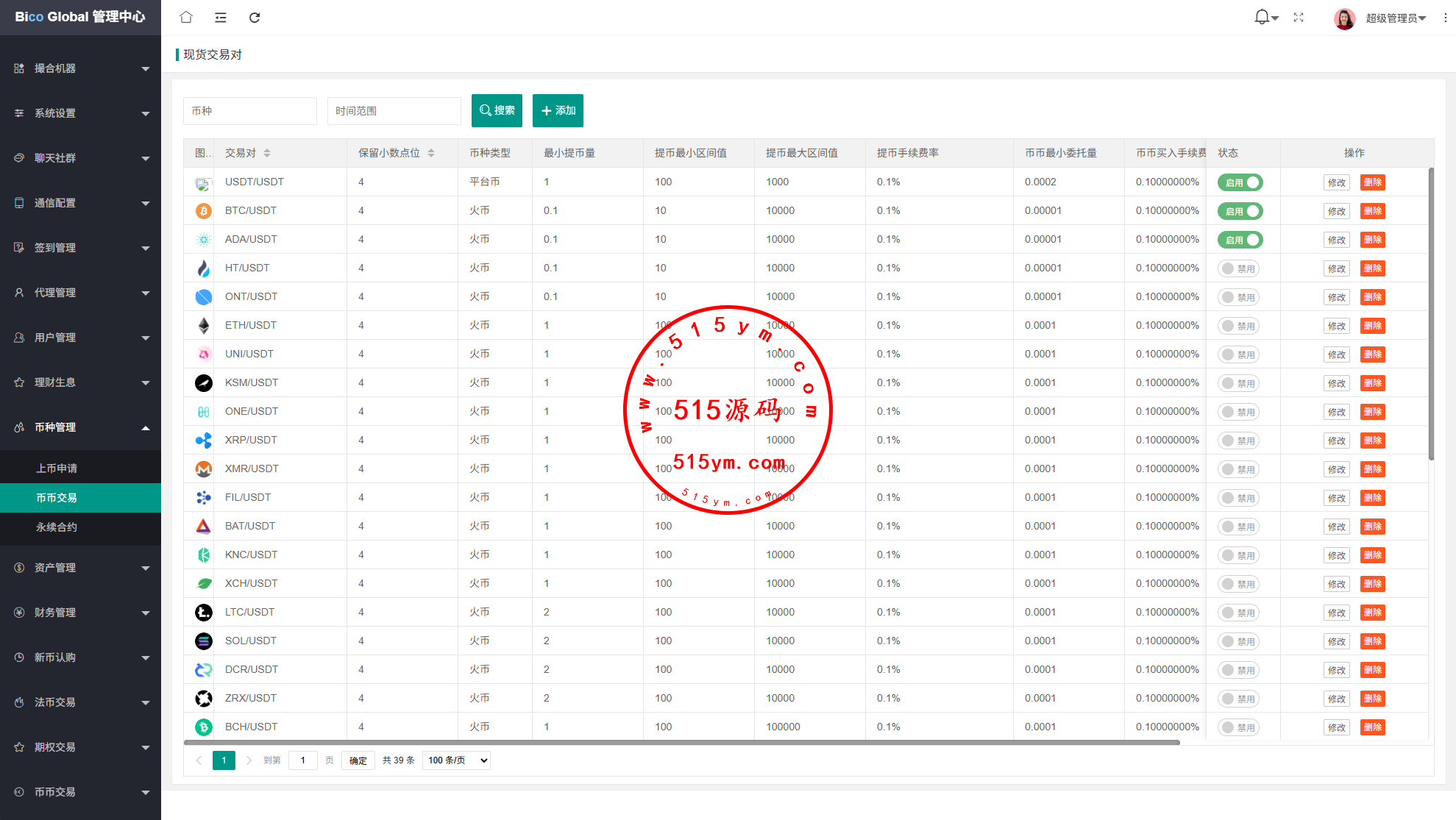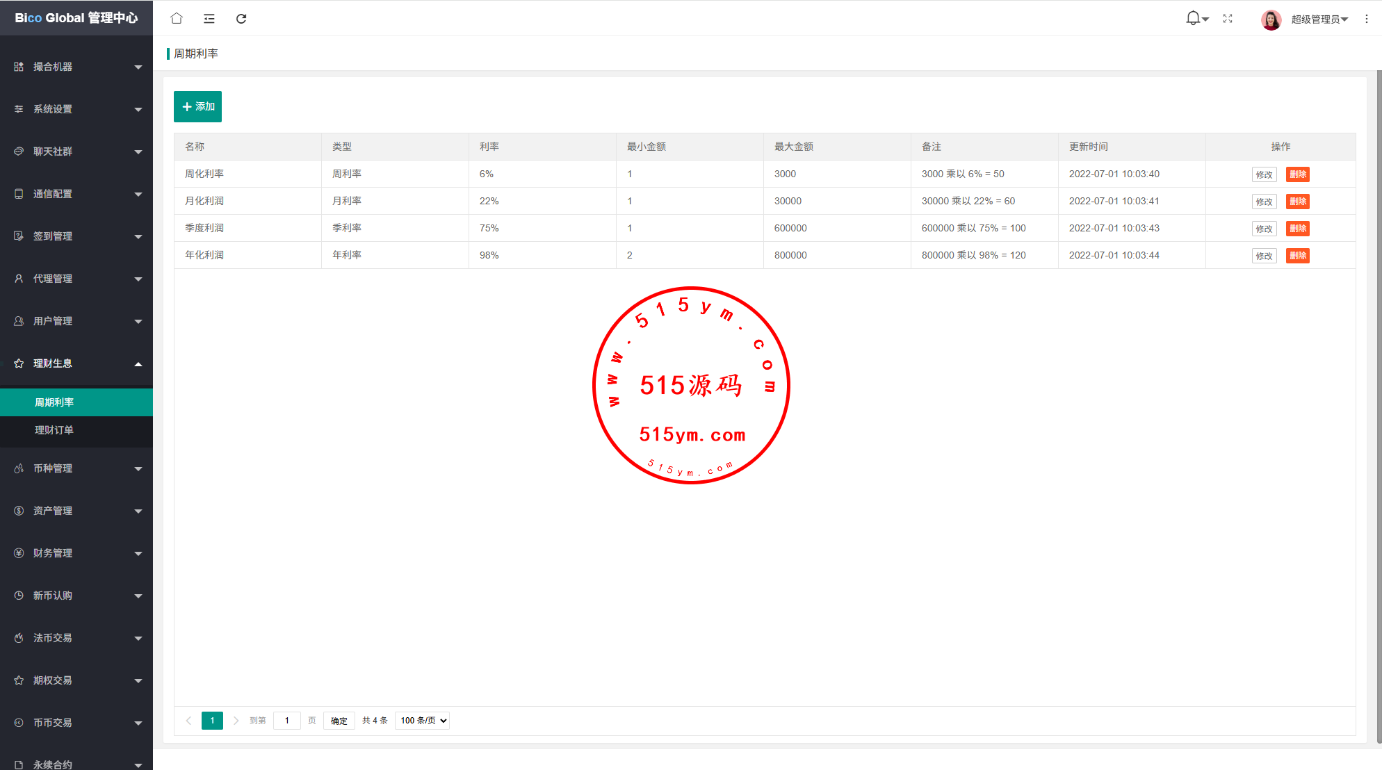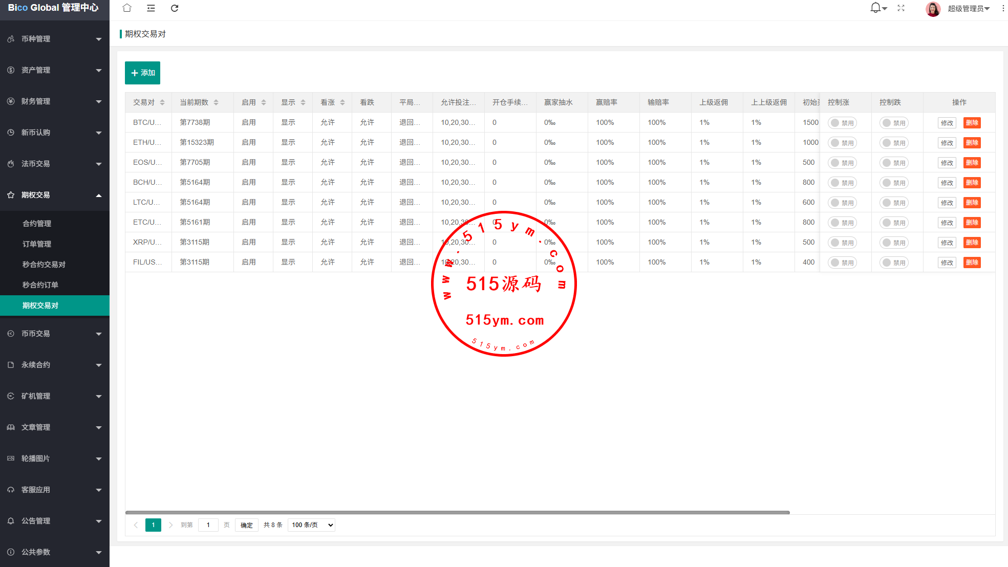 系统功能:永续合约,期权合约,秒合约,平台币,矿机质押,