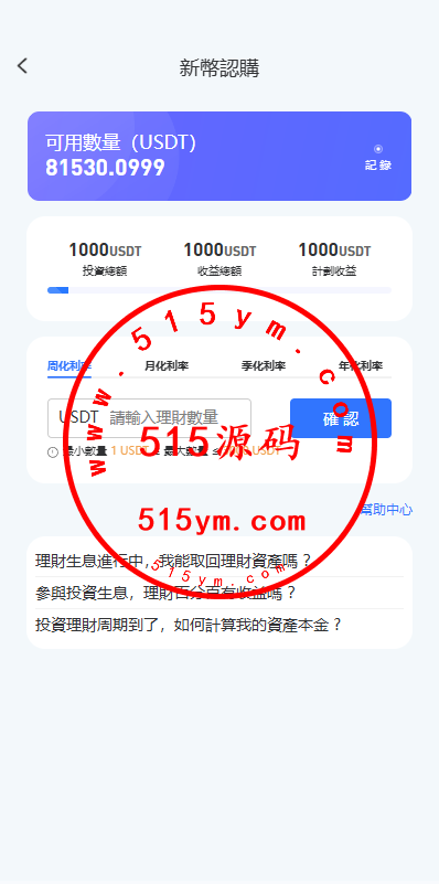 投资理财,新币认购,法币交易,社区聊天,签到等功能